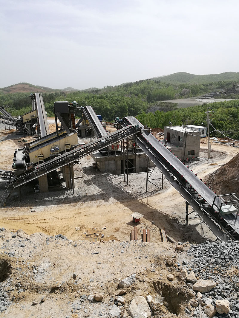 原石通过振动给料机进入粗碎颚式破碎机,经粗碎后的骨料进入反击式破碎机或圆锥破碎机进行二次破碎,然后经皮带机输送至振动筛进行骨料分级,可筛分出四种成品骨料。另外,如果客户对成品有高要求的话,可添加洗砂机来对成品骨料进行洗沙处理等,这样得到的骨料品相更高,卖价也更高!